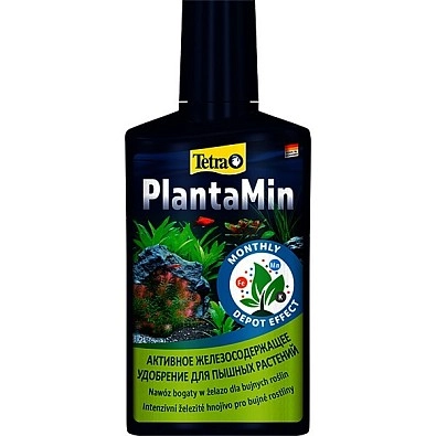 Tetra PlantaMin удобрение с активной формулой пролонгированного действия для густых травников. Содержит железо и калий, необходимые для сочных, ярких стеблей и листьев, равномерного и пышного роста гидрофлоры. Поглощается через листья, не загрязняет воду и не влияет на гидробионтов, так как не содержит фосфаты и нитраты.