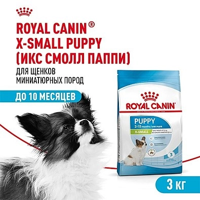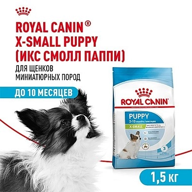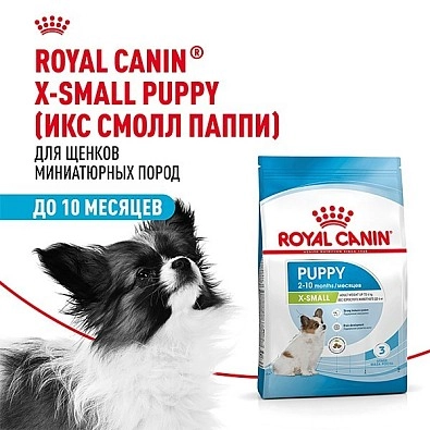 Продукт ROYAL CANIN® X-Small Puppy предназначен для щенков миниатюрных пород в возрасте с 2 до 10 месяцев. К миниатюрным обычно относят собак, которые, став взрослыми, весят менее 4 кг.