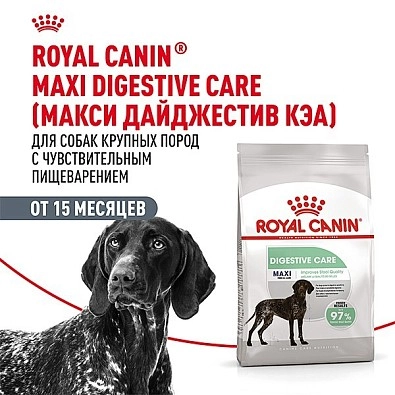 Корм ROYAL CANIN® Digestive Care Maxi предназначен для собак весом от 26 до 44 кг, имеющих чувствительное пищеварение.