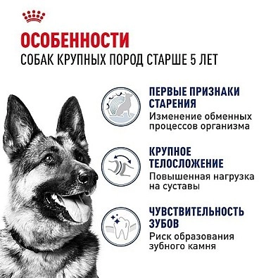 Оптимальное содержание питательных веществ способствует поддержанию здоровья у собак крупных размеров и помогает бороться с первыми признаками старения. Эксклюзивный комплекс антиоксидантов помогает нейтрализовать свободные радикалы.