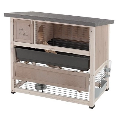 Эта клетка Ferplast для грызунов — настоящее кроличье ранчо! Корпус из сосновой древесины дополняется прочными металлическими решетками и всеми необходимыми маленькому питомцу аксессуарами. Нижний ярус хорошо подойдет для игр и еды, а на верхнем расположен комфортабельный домик, где питомец может отдохнуть.