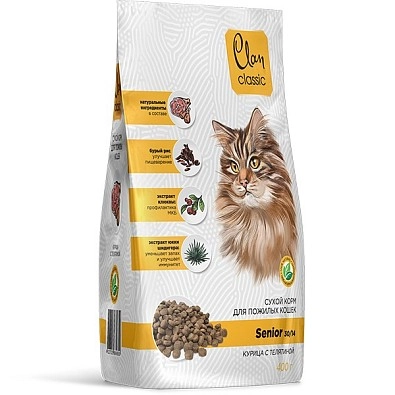 CLAN Classic Senior сухой корм для стареющих кошек Курица, телятина