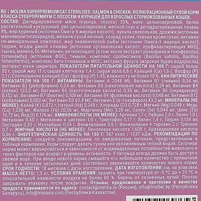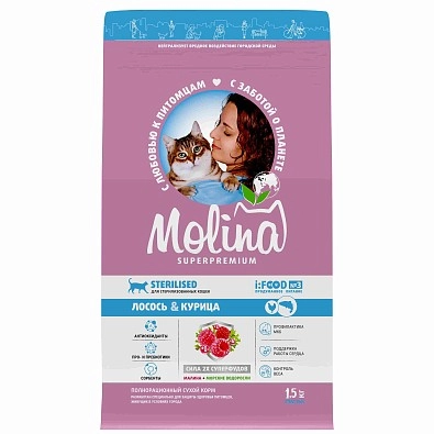 Сухой корм Molina для стерилизованных кошек с курицей и лососем (Молина)