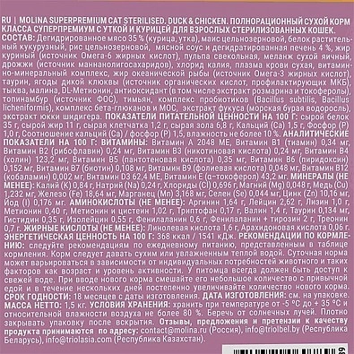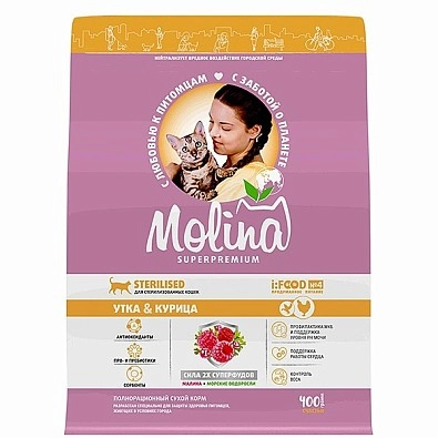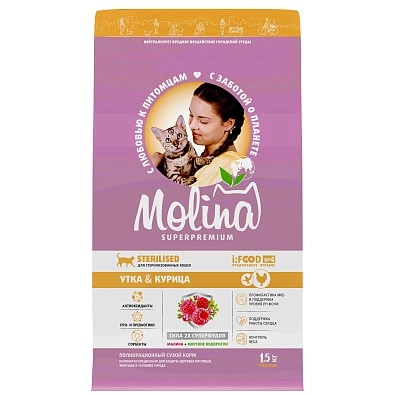 Сухой корм Molina для стерилизованных кошек с уткой и курицей (Молина)
