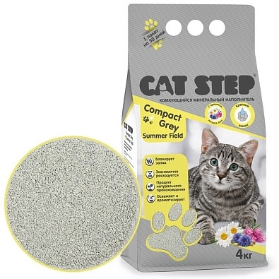 Cat Step Compact Grey Summer Field наполнитель для кошек минеральный, комкующийся (Кэт Степ)