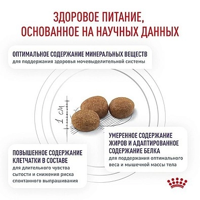 Поддержание оптимальной формы после кастрации/стерилизации. Рекомендовано для: профилактики мочекаменной болезни;