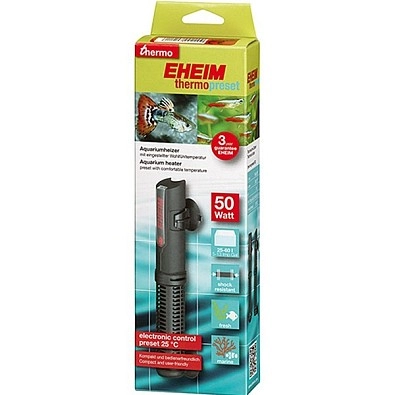 Водонагреватель Eheim рассчитан на аквариум емкостью 25-60 литров, и поддерживает температуру воды пресного или морского аквариума, на уровне 25 градусов. Нагреватель имеет мощность 50 Вт и пластиковый, противоударный корпус и высокоэффективный нагревательный элемент, который равномерно распределяет тепло. Устройство надежно защищено от сухого включения, и имеет удобное крепление на присосках. Световой индикатор позволяет отслеживать режим работы. Длина 17 сантиметров, диаметр 2,8 сантимтеров.