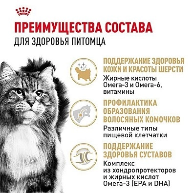 Рацион ROYAL CANIN® Siberian Adult учитывает особые потребности взрослых кошек этой породы и способствует: