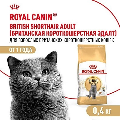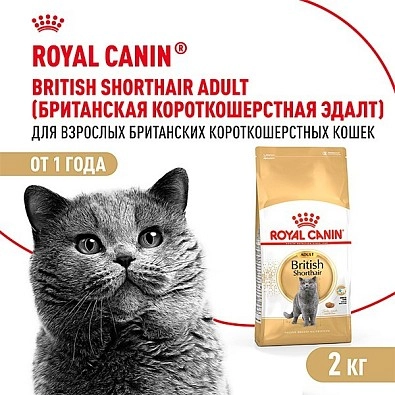 Формула продукта ROYAL CANIN® British Shorthair Adult разработана с учетом индивидуальных потребностей взрослых кошек британской короткошерстной породы. Эти кошки отличаются коренастым телосложением.