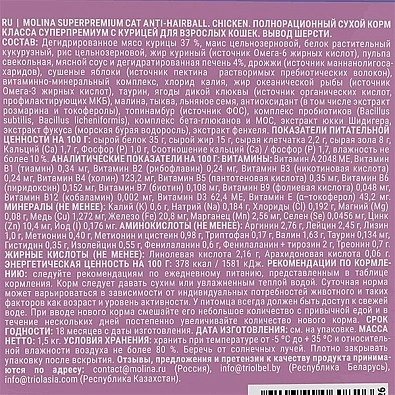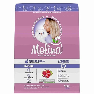 Сухой корм Molina для кошек Вывод шерсти с курицей (Молина)