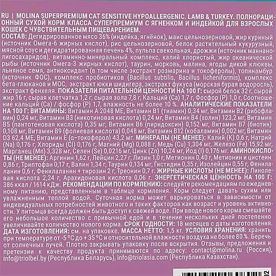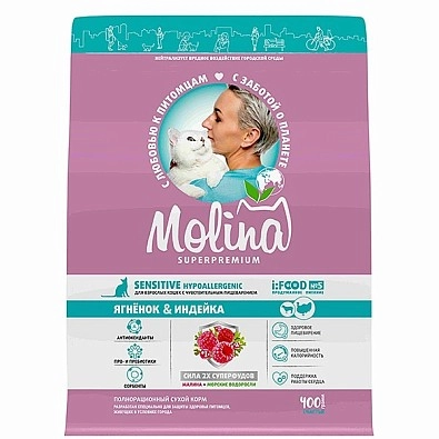 Сухой корм Molina для кошек с чувствительным пищеварением с ягненком и индейкой (Молина)